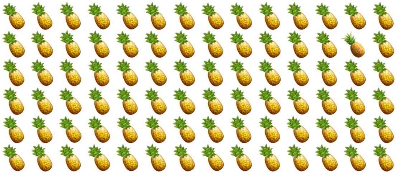 Στην εικόνα υπάρχουν πολλοί ανανάδες, που εμφανίζονται σε διάφορες σειρές. Ο στόχος σας είναι να βρείτε έναν ιδιαίτερο ανανά που διαφέρει από όλους τους άλλους.
