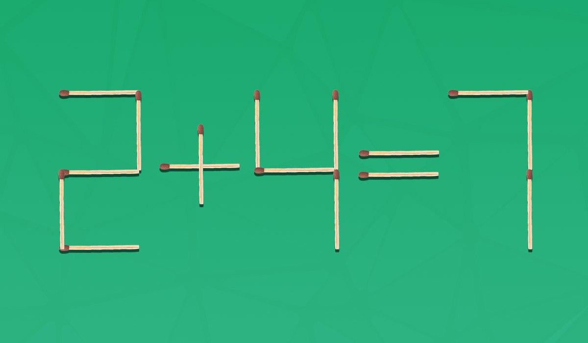 Με την πρώτη ματιά, αυτό το παζλ με τα σπίρτα είναι πολύ απλό, αλλά μην το υποτιμάτε. Για να βρείτε τη σωστή λύση, θα χρειαστείτε προσοχή, λογική σκέψη και την ικανότητα να παρατηρείτε λεπτομέρειες. Πρέπει να διορθώσετε τη λανθασμένη μαθηματική ισότητα 2 + 4 = 7 που αποτελείται από 16 σπίρτα, μετακινώντας ένα από αυτά.
