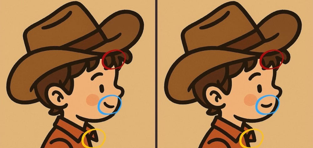 Είστε λοιπόν έτοιμοι για την επόμενη πρόκληση; Ρίξτε μια προσεκτική ματιά σε δύο εικόνες ενός αγοριού που φοράει καουμπόικο καπέλο. Μπορεί να φαίνονται ίδιες με την πρώτη ματιά, αλλά υπάρχουν 3 μικρές διαφορές. Πιστεύετε ότι μπορείτε να τις βρείτε όλες σε 51 δευτερόλεπτα; Δοκιμάστε το και δοκιμάστε την οπτική σας οξύτητα!