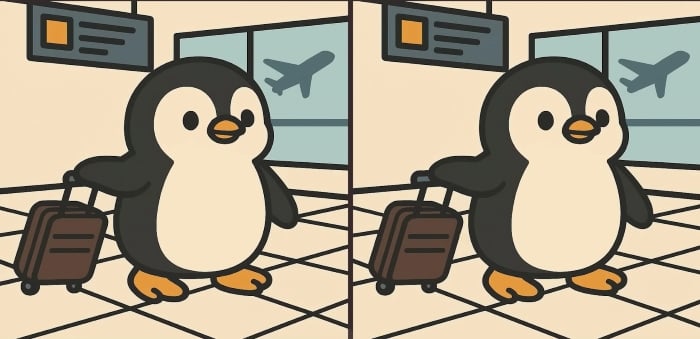 Είστε λοιπόν έτοιμοι για την επόμενη πρόκληση; Ρίξτε μια προσεκτική ματιά σε δύο εικόνες ενός χαριτωμένου πιγκουίνου που μεταφέρει αποσκευές στο αεροδρόμιο. Μπορεί να φαίνονται πανομοιότυπες με την πρώτη ματιά, αλλά κρύβονται πάνω τους 3 μικρές διαφορές. Πιστεύετε ότι μπορείτε να τις βρείτε όλες σε 61 δευτερόλεπτα; Δοκιμάστε το και δοκιμάστε την οπτική σας οξύτητα!