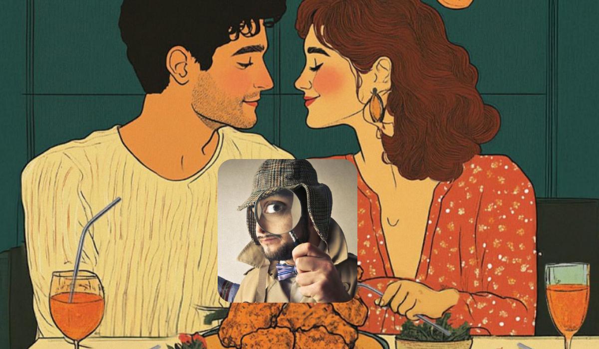 Μπροστά σας είναι ένας ερωτευμένος άνδρας και μια ερωτευμένη γυναίκα, που συνομιλούν ευχάριστα κατά τη διάρκεια ενός ρομαντικού δείπνου. Η κοπέλα είναι ντυμένη με ένα κομψό φόρεμα και ο άντρας – με ένα ελαφρύ πουλόβερ. Μπορείτε να δείτε στο τραπέζι ποτήρια με ποτά και διάφορα νόστιμα πιάτα. Στους τοίχους του μαγαζιού κρέμονται πίνακες ζωγραφικής και από το ταβάνι κρέμονται λάμπες.