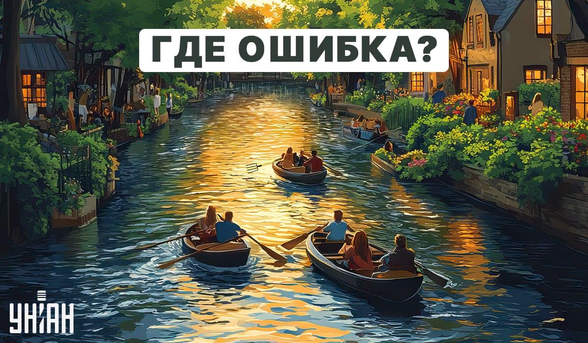 Μπροστά σας υπάρχει μια εικόνα που δείχνει ένα όμορφο τοπίο μιας βραδινής πόλης. Ανάμεσα στα σπίτια τρέχει ένα ποτάμι, στο οποίο επιπλέουν άνθρωποι με βάρκες. Με την πρώτη ματιά η εικόνα φαίνεται φυσιολογική, αλλά στην πραγματικότητα υπάρχει ένα χονδροειδές σφάλμα σε αυτήν.