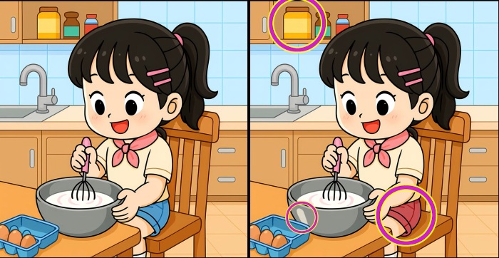 Είστε λοιπόν έτοιμοι για την επόμενη πρόκληση; Ρίξτε μια προσεκτική ματιά σε δύο εικόνες ενός κοριτσιού που ζυμώνει το μείγμα του κέικ. Μπορεί να φαίνονται πανομοιότυπες με την πρώτη ματιά, αλλά υπάρχουν 3 μικρές διαφορές. Πιστεύετε ότι μπορείτε να τις βρείτε όλες σε 51 δευτερόλεπτα; Δοκιμάστε το και δοκιμάστε την οπτική σας οξύτητα!