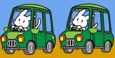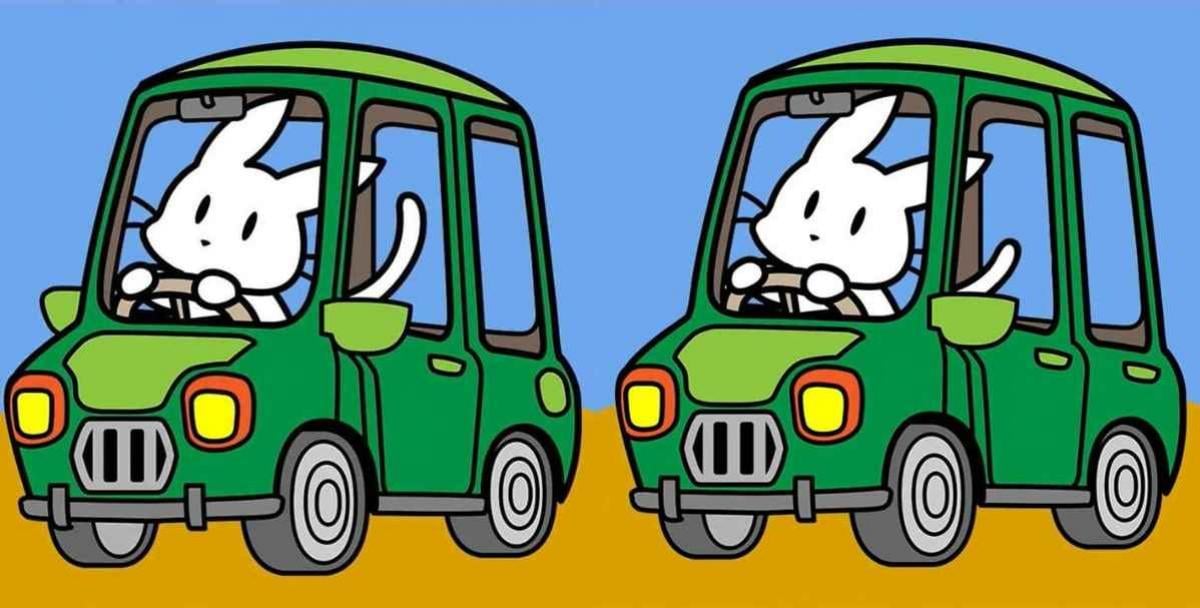 Εμφανίζονται δύο εικόνες. Και οι δύο δείχνουν ένα κουνέλι να οδηγεί ένα πράσινο αυτοκίνητο. Ο στόχος μας είναι να βρούμε τρεις διαφορές μεταξύ της δεύτερης εικόνας και της πρώτης.