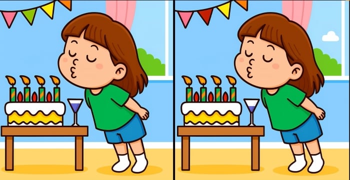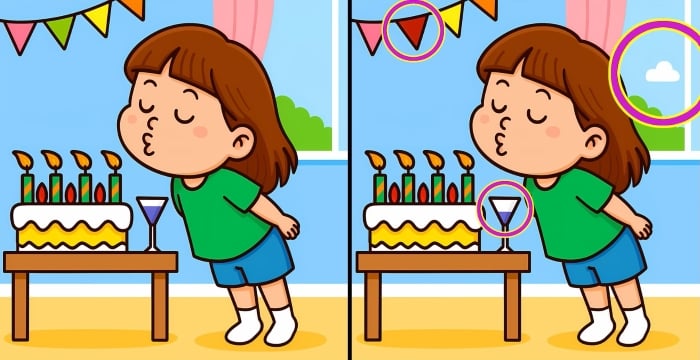 Είστε λοιπόν έτοιμοι για την επόμενη πρόκληση; Ρίξτε μια προσεκτική ματιά στις δύο εικόνες του κοριτσιού που σβήνει τα κεριά στην τούρτα. Μπορεί να φαίνονται ίδιες με την πρώτη ματιά, αλλά υπάρχουν 3 μικρές διαφορές. Πιστεύετε ότι μπορείτε να τις βρείτε όλες σε 31 δευτερόλεπτα; Δοκιμάστε το και δοκιμάστε την οπτική σας οξύτητα!